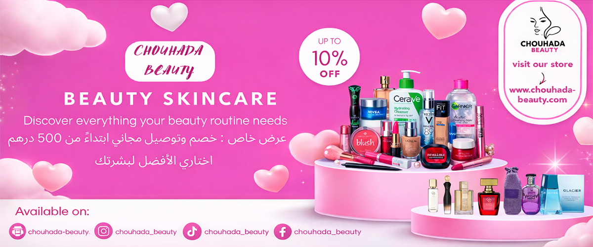 • πŸ’„ Welcome to Chouhada Beauty! 🚚 We’re pleased to offer free delivery on purchases over 500 DH ✨ and to ensure your complete satisfaction with our products. βœ…